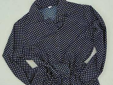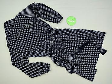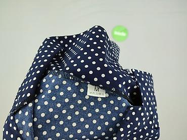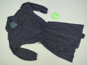 Sukienka damska w grochy, rozmiar M - Kolor: granatowy z białymi kropkami - Fason: rozkloszowana, długość do kolan - Dekolt: okrągły z subtelną falbanką przy stójce - Rękawy: długie, lekko bufiast...