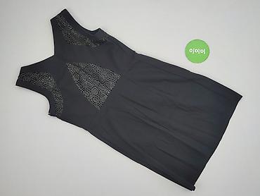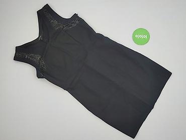 Sukienka koktajlowa damska, czarna, rozmiar EU 36. - Fason: odcinana w talii, rozkloszowany dół do kolan. - Góra: koronkowa z drobnym połyskiem, podszyta; dekolt i ramiona z półprzezroczystej siat...