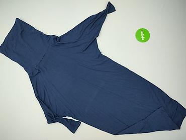 Sukienka damska z miękkiej, elastycznej dzianiny, kolor granatowy. Model oversize z obniżoną linią ramion i długimi, zwężanymi rękawami. Luźny krój z mocniej dopasowanym dołem tworzy efekt kokonu/sarongu. Szeroki, wysoki golf/kołnierz komin zapewnia komfort i możliwość różnego ułożenia przy szyi. Materiał cienki, lejący się – przyjemny w dotyku, dobrze się układa i łatwo się składa do kompaktowych rozmiarów (idealna w podróż).