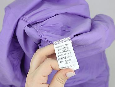 Liliowa bluzka/tunika damska z falbaną - Fason: luźny, lekko rozkloszowany dół z falbaną - Dekolt: w kształcie litery V, podkreślający szyję - Rękaw: krótki - Materiał: 95% poliester, 5% elastan –...