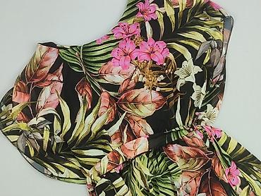 Sukienka damska w tropikalny wzór - Krój: zwiewna, z falbanami; dekolt typu hiszpanka z elastyczną gumką, krótki rękaw z lekką bufką; w talii wiązanie na pasek z tego samego materiału. - Wzór/kolo...