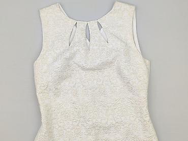 Sukienka Modello, rozmiar 38. - Kolor: kremowy/ecru z delikatnym, połyskującym wzorem geometrycznym (tłoczenie/jacquard). - Krój: dopasowana góra bez rękawów, szerokie ramiączka, w talii odcięcie;...