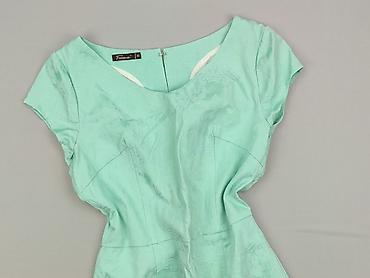 Sukienka damska, rozmiar M - Krój: ołówkowy, dopasowany, z zaszewkami modelującymi sylwetkę - Długość: sięga przed kolano (patrz zdjęcia z miarką) - Rękaw: krótki - Dekolt: okrągły - Kolor: pastel...