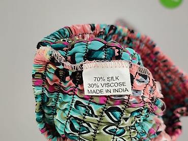 - Materiał: 70% jedwab, 30% wiskoza (metka na zdjęciu) – lekka, przewiewna tkanina z miękkim, przyjemnym chwytem i subtelnym połyskiem