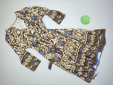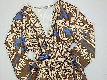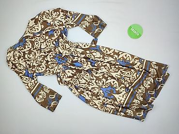 - Wzór: dekoracyjny, roślinno-ornamentalny; kolory brąz, ecru i akcenty błękitu; ozdobne bordiury na rękawach i u dołu