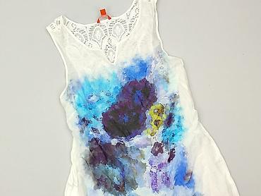 - Kolor: biały z przodu z dużym, artystycznym nadrukiem akwarelowych kwiatów w odcieniach niebieskiego, fioletu, turkusu i żółci