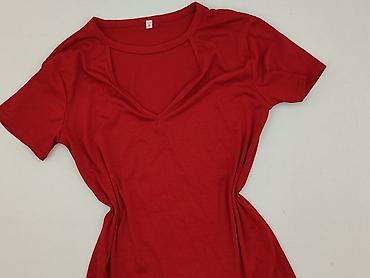 Czerwona sukienka damska z krótkim rękawem, rozmiar S. - Fason: ołówkowy, długość midi/przed kolano - Dekolt: okrągły - Rękawy: krótkie, podwijane mankiety - Detal: marszczenie/zakładka w talii, p...