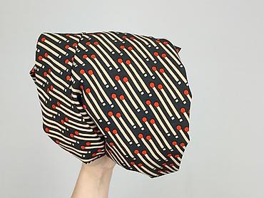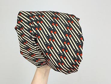 - Wzór: graficzny print przypominający zapałki – beżowe linie z pomarańczowymi kropkami na czarnym tle