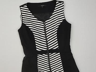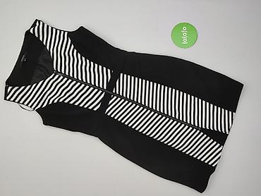 Sukienka damska RESERVED, rozmiar EU 38 (UK 10). Model bez rękawów, z okrągłym dekoltem i krytym zamkiem z tyłu. Czarno-białe pasy – u góry pionowe, w części spódnicowej układane w efektowną jode...