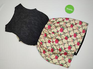 Sukienka damska, rozmiar M. Góra w kolorze czarnym, z dekoltem kwadratowym i krótkim rękawem; dół w drobny, kwiatowy wzór na czarnym tle. Fason odcinany w talii, rozkloszowany dół zapewnia swobodę ...