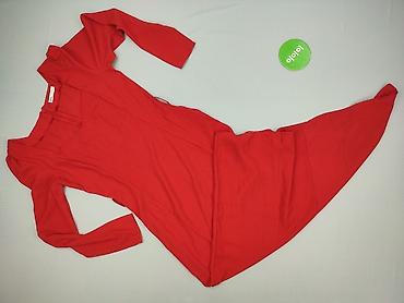 Sukienka damska w kolorze czerwonym - Rozmiar: S (metka widoczna na zdjęciu) - Fason: dopasowana góra, rozkloszowany dół z efektowną falbaną - Dekolt: w kształcie litery V z ozdobnym rozcięciem pr...