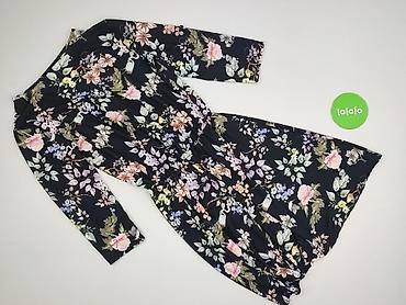 Sukienka damska w kwiaty, produkcja włoska. - Krój: rozkloszowana, z falbanami; talia podkreślona gumką. - Rękawy: 3/4 zakończone delikatną gumką. - Dekolt: stójka z marszczeniem i falbanką; z tył...