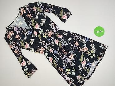 Sukienka damska, rozmiar S - Krój: góra dopasowana, dekolt w serek; dół rozkloszowany do kolan - Rękawy: krótkie, z koronką - Talia: podkreślona szeroką, ażurową wstawką/koronką - Wzór: kwiatowy n...