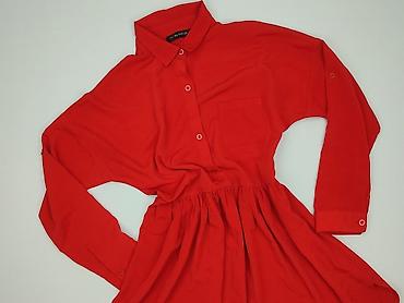Sukienka koszulowa damska, czerwony odcień. - Krój: koszulowy z kołnierzykiem, zapięcie częściowo na guziki z przodu - Talia odcięta z delikatnymi marszczeniami – dół lekko rozkloszowany - Dwie na...Stan: