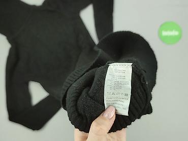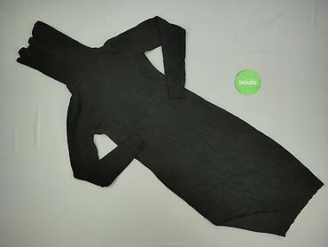 Czarna sukienka-sweterek z golfem, rozmiar S. - Fason: dopasowany, długość przed kolano, rękawy 3/4. - Materiał: 70% poliakryl, 30% wełna (metka na zdjęciu). - Golf szeroki, prążkowany. - Przód...