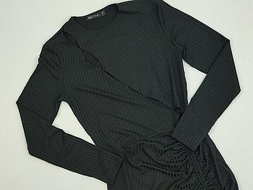 Czarna sukienka damska Elda, rozmiar 36. - Fason: mini, dopasowana w talii, z marszczeniem po boku tworzącym efekt drapowania. - Rękawy: długie, z delikatnie bufiowanymi główkami. - Dekolt: okrągły...