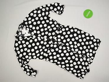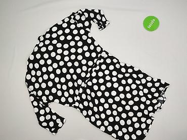 Sukienka damska w groszki - Kolor: czarny z białymi kropkami - Fason: zwiewny, lekko rozkloszowany dół, falbana biegnąca przez przód i ramiona - Rękawy: długie, lekko bufiaste, zakończone wszytą g...