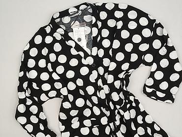 Sukienka damska w czarne tło z białym drobnym wzorem (kropki). - Fason: dopasowana, marszczona na całej długości, długość mini. - Dekolt: w kształcie litery V z wiązaniem z tyłu karku. - Rękawy:...Stan: