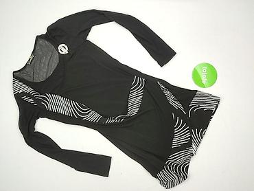Sukienka damska w paski, rozmiar M - Fason: luźna, odcięta w talii, lekko rozkloszowany dół - Rękawy: krótkie, kimonowe - Dekolt: okrągły - Wzór: czarno-białe paski (góra – poziome, dół – pionowe)...