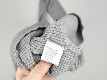 Dzianinowa sukienka damska, prążkowana, kolor jasnoszary. - Fason: dopasowany, długość midi - Dekolt: okrągły - Rękaw: długi - Detale: falbanki na ramionach, ozdobne metaliczne guziki na piersi (4...Stan: