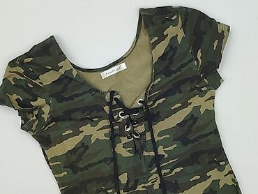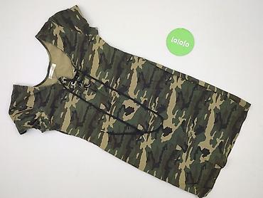 Sukienka damska w militarny wzór camo - Krój: dopasowana, prosta, z długim rękawem i okrągłym dekoltem - Długość: przed kolano (mini) - Rozmiar: M (metka na zdjęciu) - Materiał: miękki, elastyczny...