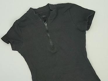 Czarna damska sukienka/tunika z krótkim rękawem - Fason: lekko dopasowana, długość mini/tunika - Dekolt: okrągły - Zapięcie: krótki zamek błyskawiczny z przodu (dekoracyjny i funkcjonalny) - Rękaw...