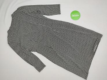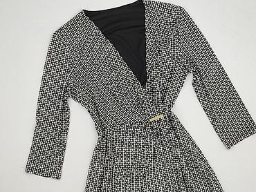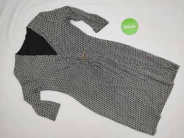 Sukienka damska, rozmiar M - Krój: kopertowy z dekoltem w serek, długa rękaw 3/4–pełny (na zdjęciach widać różne ułożenie rękawa) - Długość: midi do kolan/za kolano - Wzór: geometryczny, czarno‑bi...
