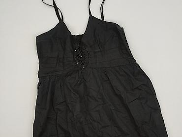 Czarna sukienka damska na ramiączkach - Krój: taliowana gumką w pasie, rozkloszowany dół - Dekolt: w kształcie litery V - Długość: mini/przed kolano - Materiał: 100% poliester (wierzch i podszewka...