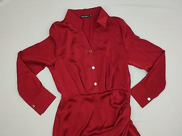Sukienka koszulowa damska, czerwony odcień. - Krój: koszulowy z kołnierzykiem, zapięcie częściowo na guziki z przodu - Talia odcięta z delikatnymi marszczeniami – dół lekko rozkloszowany - Dwie na...
