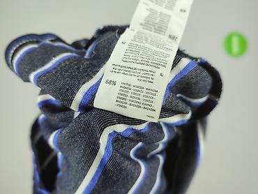 - Wzór: poziome paski w kolorach granatowym z białymi i kobaltowymi liniami