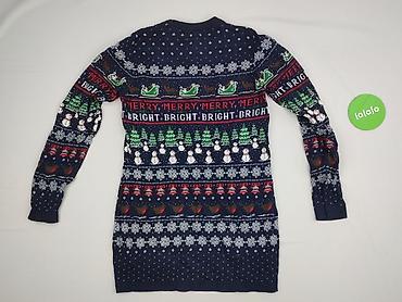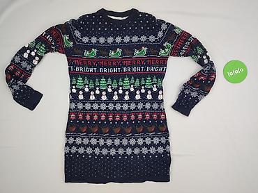 Sukienka damska z długim rękawem, rozmiar S. Model ołówkowy/mini z okrągłym dekoltem. Elastyczna, miękka dzianina imitująca splot swetra. Wzór: zimowy, skandynawski – pasy, zygzaki i motywy renife...Stan: