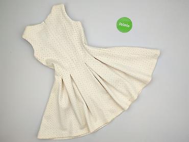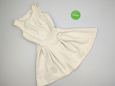 Sukienka damska w grochy - Krój: bez rękawów, dopasowana góra z modelującymi przeszyciami, od talii rozszerzana spódnica - Wzór: białe tło w różowe kropki; drobniejsze grochy u góry, przechodzące ...Stan: