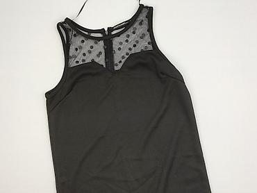 Czarna sukienka koktajlowa bez rękawów - Krój: dopasowana góra, lekko rozkloszowany dół z zaszewkami - Długość: przed kolano (mini/midi w zależności od wzrostu) - Dekolt: półokrągły, z transparent...Stan:
