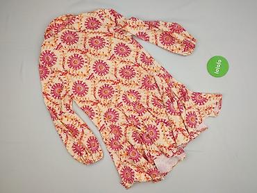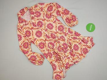 Sukienka damska w kwiaty, rozmiar S/M - Fason: lekka, zwiewna, z falbankami przy rękawach i na dole; delikatnie taliowana, z kopertowym/zakładanym dołem tworzącym subtelne marszczenia - Wzór: gęst...
