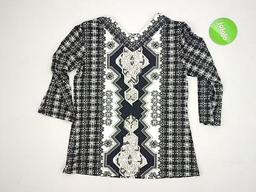- Wzór: geometryczno-kwiatowy, pasy w kontrastowych kolorach czerni, bieli i szarości; centralny panel optycznie wysmuklający sylwetkę