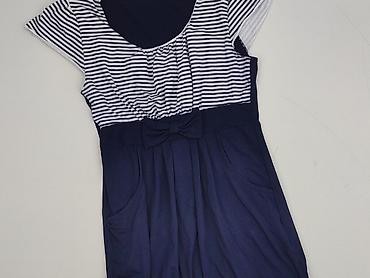 Sukienka damska House Collection – rozmiar S - Krój: dopasowany, długość przed kolano, bez rękawów, okrągły dekolt - Wzór: granatowe tło w białe paski z kwiatowym nadrukiem (różowo‑zielona roślinn...
