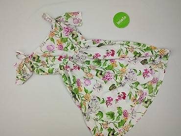 Sukienka damska w kwiaty - Krój: dopasowana góra z odcinaną talią, rozkloszowany dół z kontrafałdami. - Dekolt: asymetryczny ramiączkowy (jedno ramiączko szersze). - Długość: około 95–100 cm (na z...
