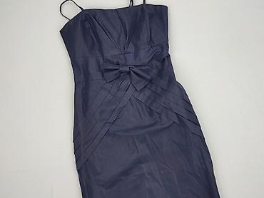 Ta granatowa sukienka damska to elegancki wybór na różne okazje. Charakteryzuje się fasonem bez ramiączek, uzupełnionym cienkimi, regulowanymi ramiączkami, co zapewnia komfort i dopasowanie. W talii znajduje się ozdobna kokarda, która dodaje sukience uroku i podkreśla sylwetkę. Plisowane detale na spódnicy nadają jej subtelnej tekstury i lekkości. Sukienka jest w rozmiarze 38. Wykonana z tkaniny o delikatnym połysku, która świetnie układa się na ciele, idealna na wieczorne wyjścia, przyjęcia czy inne uroczystości.