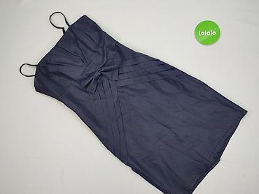 Sukienka damska, granatowa, bez rękawów - Fason: lekko rozkloszowana, z marszczeniem i regulacją w talii na troczki (sznureczki po bokach pozwalają dopasować obwód). - Dekolt: łagodnie zaokrąglony...