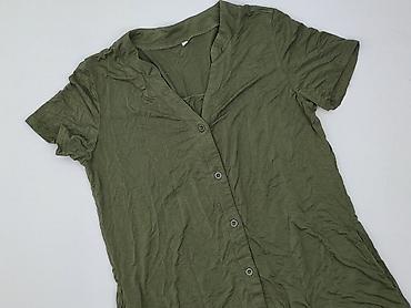 Sukienka koszulowa damska, khaki/oliwkowa - Krój: koszulowy, zapinany na guziki na całej długości - Rękaw: krótki, opadający - Kołnierzyk: klasyczny - Talia: wiązany pasek, z tyłu marszczenie podk...