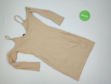 Beżowa sukienka damska z długim rękawem i cienkimi ramiączkami (efekt cold shoulder).