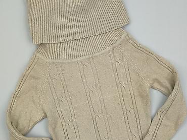 Sukienka swetrowa damska z golfem, beżowa - Fason: dopasowana, dzianinowa sukienka o długości mini/przed kolano - Dekolt: wysoki, obszerny golf z ażurowym, koronkowym splotem - Rękawy: długie, zak...