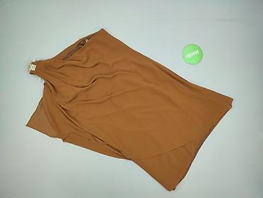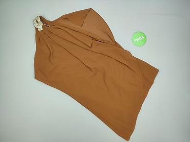 Sukienka koktajlowa Reserved, damska - Rozmiar: 36 - Fason: jednoramienna, z efektowną bufką na jednym ramieniu; dół z marszczeniami tworzącymi objętość (bombka) - Kolor i wzór: brąz z delikatnymi...