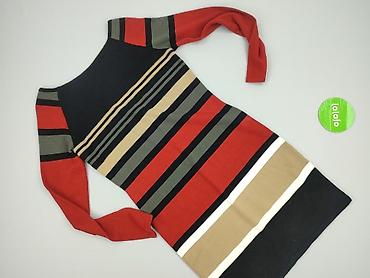 Sukienka damska w paski, dzianinowa - Krój: prosta, dopasowana, długość do kolan - Rękaw: długi - Dekolt: okrągły - Wzór: czarno-białe, poziome paski - Materiał (metka): 58% bawełna, 38% poliester...