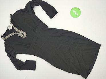 Czarna sukienka damska Sans Souci, rozmiar S (EU S, USA S, MEX 26). - Fason: rozkloszowany dół z zakładkami, dopasowana góra. - Dekolt: głęboki w kształcie V z przodu i z tyłu. - Rękaw: 3/4. - Mat...