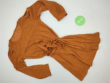 Sukienka damska, rozmiar S, kolor musztardowy/karmelowy. - Fason: dopasowany, długa, bez rękawów, z marszczeniami po bokach i z tyłu, lekko rozszerzany dół. - Dekolt: łódka. - Tkanina: 65% polie...