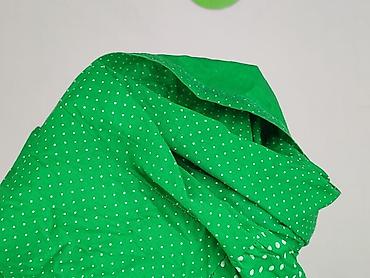 Sukienka damska w groszki - Kolor: pastelowa zieleń z białymi kropkami - Fason: lekko rozkloszowany dół, gumka w talii podkreślająca sylwetkę - Dekolt: z wiązaniem pod szyją (kokarda) - Rękawy: kr...Długość: