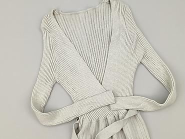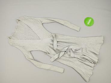 Sukienka damska, rozmiar S. - Kolor: jasnoszary. - Krój: góra luźna z okrągłym dekoltem i krótkimi, opadającymi rękawkami; talia podkreślona szerokim, połyskującym pasem. - Dół: asymetryczny, z kil...
