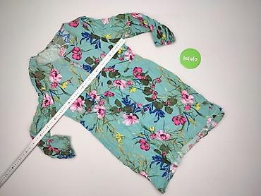 Sukienka damska z kolorowym, kwiatowo-roślinnym printem - Rozmiar: S (metka widoczna na zdjęciu) - Krój: dopasowana góra, rozkloszowany dół - Rękaw: krótki - Dekolt: łagodnie zaokrąglony z ozdobny...