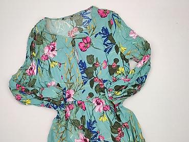 Sukienka damska w kwiaty, kopertowa, turkusowa - Fason: kopertowy z zakładanym przodem, wiązanie/panel overlap w talii podkreślający sylwetkę - Długość: do kolan (midi/krótka) - Rękawy: 3/4 z deli...Długość: